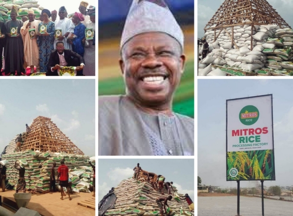 It was however shocking when our source revealed facts about the lies and deceit involved in the said MITROS rice right from the venue of the launch. It was revealed that no rice of such quantity was planted in any part of the state and none of the rice mills displayed during the launch were functional. The little ones displayed by Amosun are the ones he bought from different sellers across all the markets in the state, then after, was SAND FILLED IN SACKS AND DISPLAYED AS RICE to deceive the CBN into believing that the N4bn agriculture loan has been put into massive rice production. The governor knows there is no rice farm to take the CBN governor to and the total number of bags of rice to be displayed isn’t up to 7,500 which won’t reflect rice production of N4bn. That’s why the fake rice pyramid had to be created to reflect the acclaimed 110,000 bags of rice displayed during the launch which will make the governor access the second batch of the loan. That was why the commissioner for agriculture recently revealed that the sum of N4bn was used to plant the recently launched MITROS rice